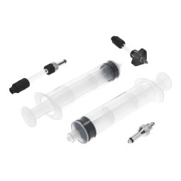 - sada obsahuje dvě injekční stříkačky o objemu 35ml a také tři další koncovky, pomocí kterých se stříkačky připojují k brzdovému třmenu a brzdové páce